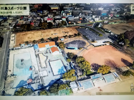 川島スポーツ公園(Google Earth映像) 2021・2・11 祝日に行ってみました テニスコート:以前は全てが赤土のクレーコートであったのが 1面はハードコート、その他はオムニコートにリメイクされていました