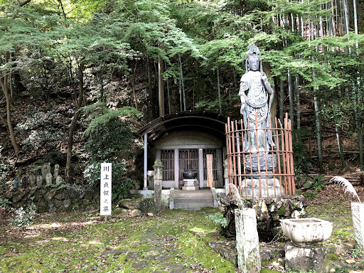 境内の一角(本堂の東側)には、 貞奴のねむる霊廟があり、桃介が建設した大井ダムに向って観音像が立てられています。