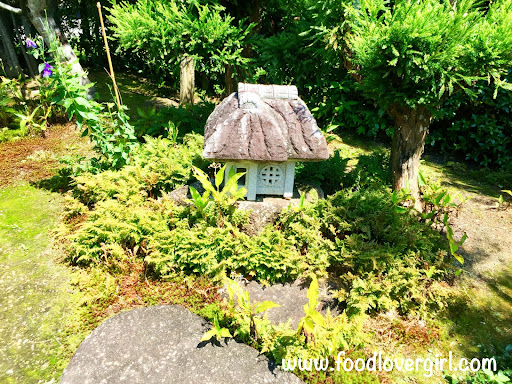 The main tea room is in the back, with large windows that overlooks their peaceful garden. It is such a beautiful setting with the greenery outside against red carpet. The windows are all around the room, so that the view of the garden can be enjoyed from any and all seats.