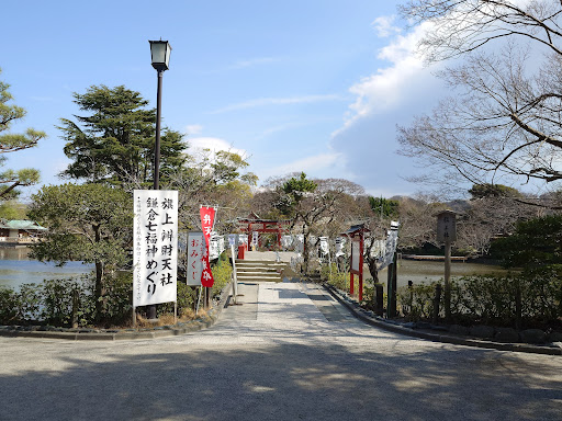 Read more鶴岡八幡様の源氏池に浮かぶ島でお祀りされている弁天様です。 源頼朝の旗挙げに際しては家運長久の守護神として弁財天が現れ、霊験があったと伝えられる。 また旗上弁財天社は北条政子が建立したものとも伝えられている。 また徳川二代将軍秀忠の妻のお江は鶴岡八幡宮の弁財天を信仰し、三代将軍となる家光を授かったと伝えられている。 鶴岡八幡宮の一の鳥居は、お江の夢の中に現れた弁財天のお告げによって建て替えられたものといわれ、四代将軍家綱の時代に寄進されたもの。