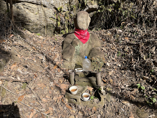 コースからちょっと見上げた所にあり、よじ登るとお地蔵さまが見えます。