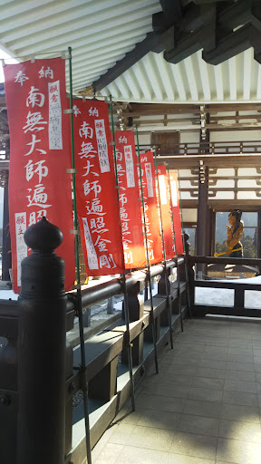 現代建築の技術の粋と伝統美が見事に調和した高さ40mの重層寄棟づくりの巨大な建物です。屋根には、鴟尾(高さ2.7m、重さ1.1t、金箔1.8万枚)が二体、空高く金色に光り輝いています。殿内の三方の壁には806体の石仏が安置されていますが、一体一体が手作りで、それぞれの表情や衣が個性にあふれています。参拝される多くの方々の祈りを石仏にこめて、年を経ていつか、1200体安置にと完成される日が待たれます。