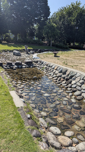 Read more長い滑り台や綱渡りがあり、子供が夢中になって遊べる公園。 新たに遊具が新設されてパワーアップしたが、横幅の広い滑り台の傾斜が急で、小さい子供が滑るには少しヒヤヒヤする。小さい子供には必ず保護者が付き添うようにと注意書きがしてあるが、大人の体重だと、加速がついて凄いスピードが出るので、前方に人がいないかきちんと確認しないと大怪我に繋がるので、慎重に遊ぶ必要がある。 以前水が流れていたであろう石造りの川が、現在は水が抜かれており、中で遊ぶ子供を沢山見掛けるが、中にある出っ張った石がとても危なく、ここも目が離せない。 休日には人が沢山来園するのでとくに小さい子供はしっかり保...