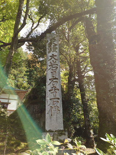 本尊である大岩日石寺磨崖仏(国指定重要文化財)は不動明王像、二童子像(矜羯羅童子像・制咤迦童子像)、阿弥陀如来像、僧形像の5体で構成され、中でも不動明王像(像高313.5センチ)と二童子像(像高214センチ)は行基が自ら彫り込んだと伝わるもので(実際は平安時代末期作)大きさや美しさ、保存状態から全国の中でも指折りの磨崖仏とされます。