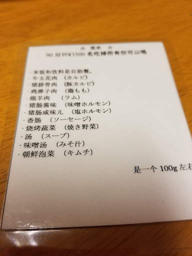 Waitress showed us a card with Chinese translation for the menu, but there were 3 more kinds of meat which were not included in the card that she showed us. So we never knew there were more choices for us until we realized other table had other kind of meat that were not included in the card. I think this is not right and I believed it was not a mistake in forgetting to include those items inside the Chinese menu (I also checked the English menu and it was the same).