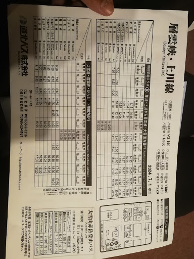 19/09 : Je vous met tout ce que j'ai pu récupérer comme info qui n'était pas sur internet en photo Il y a un chemin pour aller de Sounkyo-onsen jusqu'à la 5ieme et 7ieme station, mais impossible de trouver la durée du trajet. Je pense en tout cas que marche de la 5ieme a la 7ieme est une bonne solution poour une journée entière de marche : surtout si vous avez l'habitude de la randonnée, ca limite les frais et de la 7ieme au mont Kurodake le chemin n'est que cailloux et escaliers, donc pas vraiment reposant. La vue est magnifique. Il y a un point de vue à 15 min à pieds de la 7 ieme station.une fois a Kurodake, il y a possibilité de fzire +25min au refuge et encore 25 min pour aller à keigetsudake.