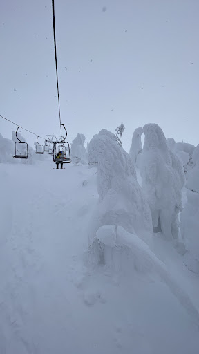 Read more例年ですとザンゲ坂周辺でしか樹氷は見られないのですが、今シーズンはユートピアゲレンデ付近でも樹氷が生育してました。また、頂上付近は年々小ぶりになってくけど、ここは蝕害の影響が全く及んでなく、10m級の巨大な樹氷に圧倒されました。まさしくSno...