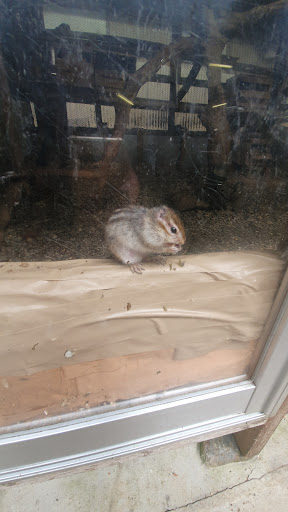 【建物の様子】 駐車場からしばらく坂を登った先(400mほど)にあります。 大きなネットが貼られた区画内にシマリスが放し飼いされています。その中で更に人間用とシマリス居住用で区切られています。時々人間側のスペースに出てきます。 また2箇所あるケージ内にも展示されています。