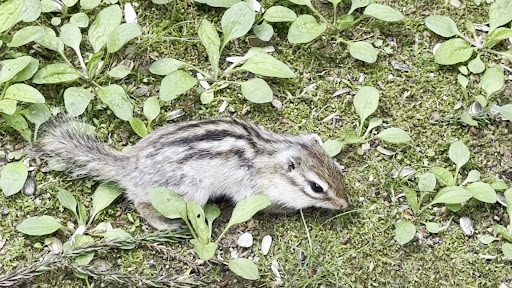 スタッフの方によると時期的な問題との話でした。今年は市の依頼で例年より早めにエサやり解放をしたが、4月はまだ本格的に活動してない、匹数も少ない、各個体も慣れていないため食べにこないとのこと。また食べられなかったエサは柵内に投げ込まれているようで、柵内に散らばった種をシマリスたちは食べていました。 柵の外に出る必要がないためほぼでできません。