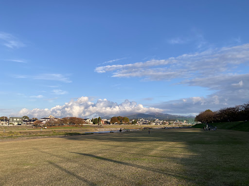 You can use the parking lot of the nearby Ishikawa Children's Exchange Center. It is a very large park, with plenty of space for many people to play. When playing with a ball, you may need to be careful because the ball may fall into the river. Toilets can be rented at the Children's Center. The lawn is carefully maintained, very clean, and there is not much garbage. There is no playground equipment, but it is a good space for running...