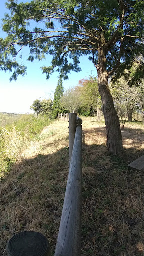 堅田城の城域はこの付近の山城の中では広い方である。大部分を見学できる周遊ルートがつくられているが、訪問時は夏草が延びており、木製階段も崩落しているなど、けっこう荒れていた。