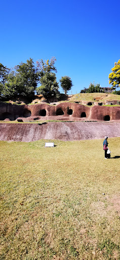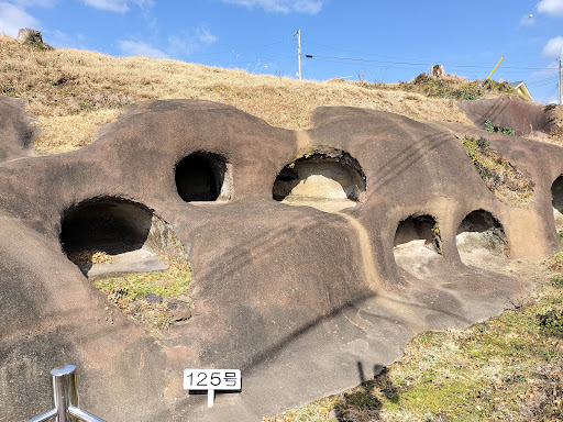 Read more吉見百穴より横穴群は見応えがしました。事前にグーグルマップで上空から確認して行けば良かったと後悔してます。広大な公園の端にこの情景はあるのですが、散策ではなく、車での訪問の為、道幅が狭く生活道路の為長居ができなかった。あと少し周回すれば駐車場に出会えたのに。 日を改めて、お盆に訪問、駐車場へ車を入れ、公園と併設の野球場を囲み周囲を散策できる小道が作られ、ジョキングや散歩に適した公園になっていて、この奥の斜面に目的の横穴群が忽然と現れた。回遊できるように導線の小道が整備されていてて、説明もわかりやすく書かれている。ただ、くづれることを恐れ加工を加えてあるのは仕方がないのかも。 埼玉県吉見の百穴を見ているので、古代のお墓の在りようが少しは頭に残る。 近くで見てみるのと距離を置いてみるのでは大きな違いがあると感じ、木々のしげる葉陰を通してみる横穴群はやはり、訪問した時期がお盆の時期ゆえ古を感じる人の思いと同じ想いがよぎった事も事実...