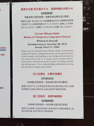 Read moreThis place is a historical building that used to be hotel for International delegates in Japan however, this place is currently under renovation, and it is closed until...