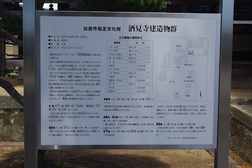 真言宗高野山派の寺院です。広い境内に伽藍が配置されており、きれいです。石橋で隣の住吉神社と繋がっており、心が落ち着きます。明治以前は七院の塔中を有する非常に栄えた寺院でした。明治政府の一山一院令により現在の寺の前身である実相院のみを残して廃院となりました。寺は徳川家から朱印を貰うほどの格式がありました。となりの住吉神社も酒見社と呼ばれて寺が1000年近く管理していましが、明治政府の神仏分離令により神官が配置されるようになりました。寺領の多くを政府に没収され小学校などが建てられました。現在の北条小学校は酒見寺の犠牲の上に存在しているのです。木造から鉄筋の校舎に立ち替わりましたが、余剰地ができゲートボール場が建てられました。今こそ加西市は余った土地を寺に返還してほしいものです。それとグランドから弁天池に流れ込んでくる土砂もどうにかしてほしいものです。 近くのイオンの正面入口そばに菓遊館という和菓子店があり「...