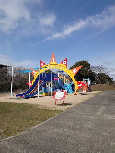 Read more岡山県笠岡市にある公園です。幅60m~100m程度で長さ3.5kmにわたる広大な公園です。 笠岡湾干拓地の海沿いに整備されていて、駐車場も各所に第1~7駐車場まであり500台弱停められるとのことです。 土曜日のお昼前に一番南側の第二駐車場に着きましたが、ほぼ貸し切り状態でした。 近くにロープのジャングルジムと、太陽を模した真新しい複合遊具にたくさん滑り台などがあり、車から降りてすぐ遊ぶことができます。 水道や自販機も近くにあり便利でした。 そのあと、ほぼ中央部にある第四駐車場に移動して遊びました。 こちらは駐車場からは少し歩きますが広い広場とバスケットゴールがありました。 広場の端に複合遊具もありました。こちらの遊具は未就学児でも楽しめるレベルだったかと思います。 あと少し古いですがトイレが設置されています。 そのほかのエリアは訪れていませんが、ローラースケート場・グラウンドゴルフ場・BMXコースがあり、楽しみ方の選択肢が沢山あります。