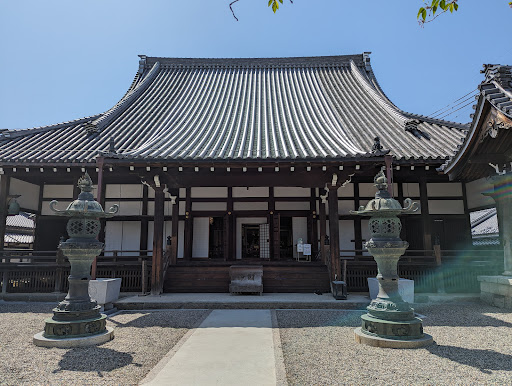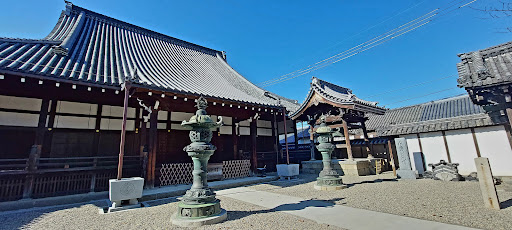 橿原市今井町の寺内町御堂筋の中心部にある浄土真宗本願寺派の寺です。明治10年明治天皇が行幸され宿泊されたが西南戦争の勃発で慌ただしく帰られた。 由緒書きより⤵️ 今井町は十六世紀中頃には、本願寺の一家衆、 今井兵部豊寿によって、武装宗教都市「寺内町」 が形成されていたとみられる。 当寺は、天正年間、本願寺第十一世顕如上人により寺号を得て、今井兵部富綱を開基として 建立したと伝え、寺内町今井の中核として発展し、 大和五ヶ所御坊、十六大坊の妻として中本山に 列する寺である。当寺は代々、今井氏が世襲して兵部と号し、 武士と僧侶をかね、信長・秀吉・家康に仕える 中でも、特に秀吉の庇護は厚かったが、江戸時代 に入り、寺内町の存続をきらった幕府は、延宝 七年(一六七九)今井氏は武士 を返上し釈門に専念することとなり現在に至る。 本堂は、桁行二十米 梁間二十米、入母屋造、 本瓦葺、向拝付、東向の大規模な建物で、重要 文化財に指定されているが、他の建物も多く寺観 を構成している。本堂は、真宗寺院の典型的な平面を有し、 部分的な改修はあるが、当初の形態を よく留めている建物である。 南側の細長い庫裏は、旧は二列で明治十年に北側一列を増築している。 客殿は庫裏の西側に接続し、折れ曲って書院 がある。 庫裏・家殿は、後世 初期頃の建物とみられ もつ貴重な建物といえる。山門は多武峯より移築されたので、太鼓楼は弘化二年...