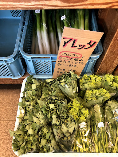 ■てんと 大きな三角屋根の施設です。 「知産知消マルシェ」はかなり大規模で、売り場面積677㎡もあるようです。地場の神泉な野菜や果物だけでなく、本屋や、様々な加工品やお土産など多種の商品が並んでいます。お弁当やお惣菜の種類も多いので外のしばふ広場で食べることもできますね。