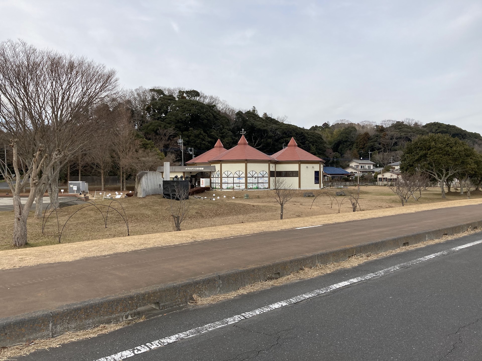 水族館 トンガリ屋根が目につく水族館。霞ヶ浦に生息する魚を中心に淡水魚約110種類・1,500匹を巨大魚の水槽や霞ヶ浦にすむ魚の水槽、魚に直接触れることができるタッチ水槽など様々な水槽に展示しています。