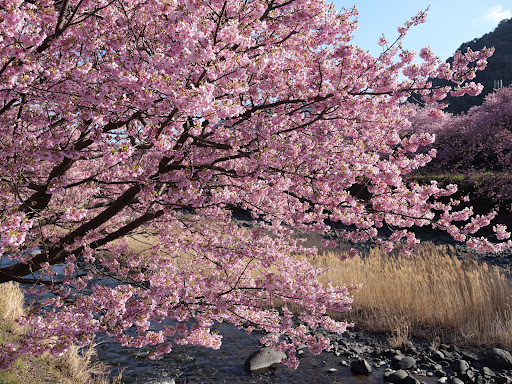 Read more2/13造訪,滿開中。名聞遐邇的河津櫻是幾種早開的櫻花之一,屬於大島櫻和緋寒櫻的自然混種,1955年偶然發現樹苗栽種為河津原木,後經由伊豆農林實驗室持續改良培育成今河津四處所見的櫻花,約在每年2月上旬至3月上旬綻放,花期長達一個月。河津櫻的特色是粉嫩顏色加上較大的花蕊,在開花後的兩星期長出新綠的嫩葉。河津地區共有8,000棵櫻花樹,河津川兩岸約占800株櫻花。每逢2月這裡都會舉辦「河津櫻花祭」,吸引上百萬的國內外遊客前來參與盛會。花季期間即使是非上班日也會非常塞車,...