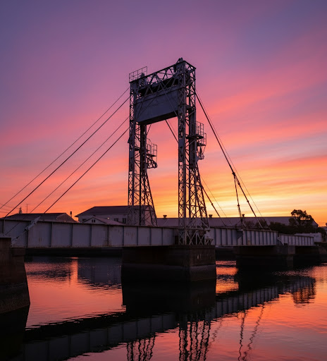 夕暮れ時、四日市の港町に立つと、水面に映る茜色の空が、まるで別の世界への入り口のように揺らめく。その中に、ひときわ目を引く重厚な鉄の構造物があった。今日まで幾多の物語を見守ってきた末広橋梁だ。 古くから物流の要衝であったこの地で、人々の暮らしと産業を支えるため、一本の橋が架けられた。それはただの橋ではない。必要な時に空へと持ち上がり、船の往来を許す跳開橋という、当時の最新技術の結晶だった。 時代は移り、人々の生活様式も大きく変化した。物流の主役が変わり、船が通るために橋が持ち上がる光景は、以前ほど頻繁には見られなくなった。しかし、末広橋梁はただ静かにそこに佇むだけではなかった。 ある日、遠くから力強い汽笛が響き渡る。ゴトゴトと重い音を立てて、赤い車体が印象的な「レッドベア」が、黒い貨物列車を牽引しながら橋を渡っていく。 それは、現代の日本を支える大切な物資を運ぶ、力強くも頼もしい使者のよう。橋は、過去の歴史を刻みながらも、今もなお現役でその役割を果たしている。 夕焼けに染まる空の下、船が通るたびにゆっくりと持ち上がる橋の姿は、まるで大空に開かれた門のようだ。その雄大な姿は、見る者の心を揺さぶり、忘れかけていたロマンを呼び覚ます。 末広橋梁は、技術の粋を集めた遺産であり、時代の移り変わりを見守ってきた証人であり、そしてこれからも、四日市の空と水と、人々の物語を繋ぎ...