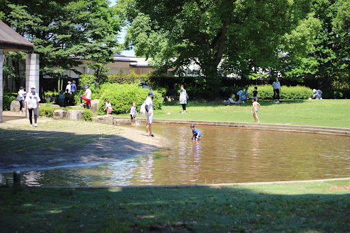 じゃぶじゃぶ池も上流から繋がっており、下流は大きな池のようになっているので広々と遊べます。 また周りが木陰や芝生になっているので気持ちよく過ごせます。