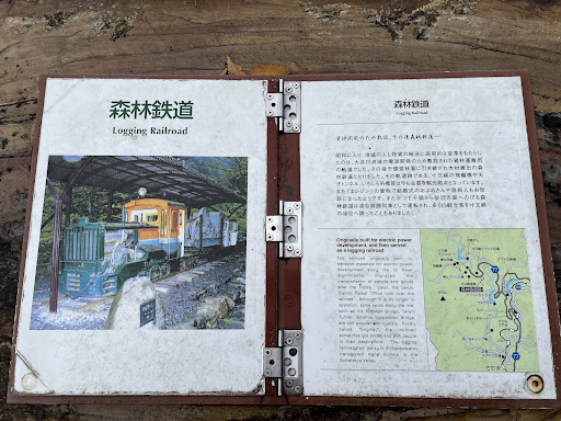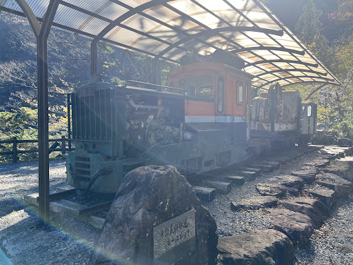 展望台入口には 古い軌道車輌が展示され 説明を読むと かつてコノ地区で実際に 森林資材等の運搬に使われていたモノ との事でした