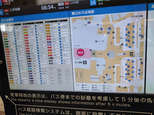 【バス・私鉄】 中央南・中央北・北改札より東口に出るとすぐ近くに京急川崎駅があり、市内を回る路線バスも多くあり、市外に出るバス路線も、三井アウトレットパーク木更津行きや東京ディズニーリゾート行き、綱島駅行き、五反田駅行き、羽田空港行きなどの便利な路線も多くあります。 川崎駅には、東口バスターミナル・西口バスターミナル・川崎駅ラゾーナ広場バスターミナルの3つのバス乗り場があります。 There are many Keikyu Kawasaki stations soon after exiting the east exit from the central south, central north, North ticket gate, there are many bus routes around the city, bus route going out of town also goes to Kisarazu Mitsui Outlet and to Tokyo Disney Resort , Shin-Yokohama station, To Gotanda station, Haneda airport and so on. At Kawasaki station there are three bus stops: East Bus Terminal, West Exit Bus Terminal and North Exit West Bus Terminal.