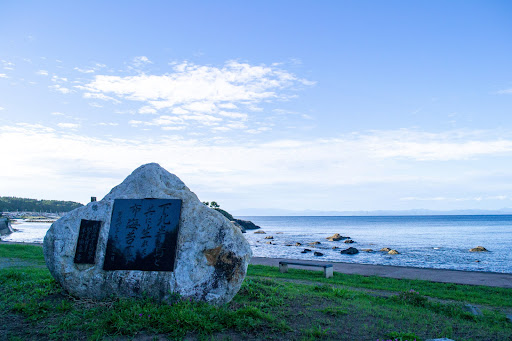 はまなすライン(国道279号線)をバスで移動中、波打ち際の水深の浅い所にゴロゴロと石が顔を出している光景が続いて気になっていましたが、そうか、あの石で布海苔が育つんだ...。 近くに公衆トイレもバス停もあって、津軽海峡にも直面できるので、ドライブ中の休憩に...