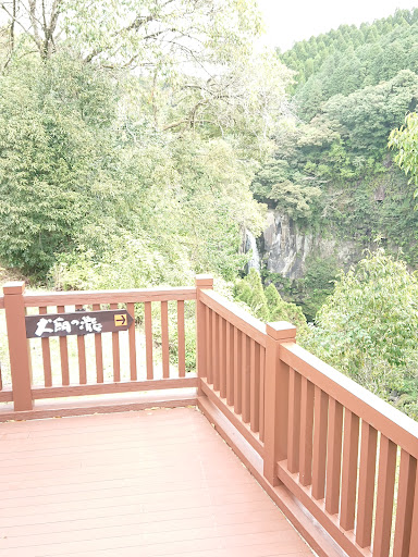 駐車場内に設置されている小上がりの展望台から見える滝で満足出来ない方は、滝壺近くまで見に行かれることをおすすめします。 駐車場から230段ほどの階段と細い遊歩道を進めば、滝壺に行けます。 途中で二手に分かれますが、左に進めば滝壺です(右に進んでいないので何処へ行くのか分かりません)。 前日に雨が降っていたので、足元は泥濘んでいました。 雨の翌日に行くと靴はドロドロになるし、泥濘で滑りやすくなっていますが、階段にはスリップ防止のウッドチップ舗装がされているので、階段では安全に歩けると思います。 駐車場にある小上がりの展望台で見るより、実際滝壺近くで滝を見たほうが何十倍も心が動きます。 行き帰りで歩くだけに集中せず、木もれ陽や苔などの...