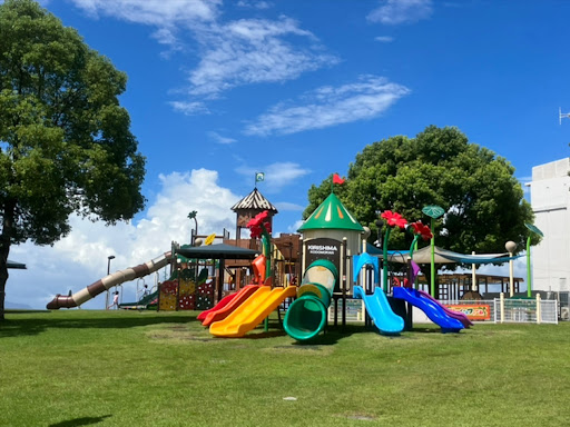 Read more子供あんまり好きじゃないから、奇声の高い声が聞こえると苛つくけども、、、(アベニールにご飯食べにきてるから)。ただ、子供達にとっては広いし、遊具もあるし、大声出せるから、普通の公園より良いと思う。周りが工場(集荷の場所)とかだから、騒いでも大丈夫だし、親が目を離すなと思うけど(たまに携帯ばっかりイジってる馬鹿がいる)、芝生もあるし、走り回れる貴重な場所だと思う。お弁当持ってきても食べる所が出来てたし、子連れには最適、特に庭が無い子はここで暴れるべき。とっても子供が暴れ(適度にね)騒ぐのに最適。アスレチックもちび用、小学生位の子用と二種類あるのも良き。怪我は自己責任なので、必ず親と。あと暑い夏は、アスレチック自体が火傷する暑さになるから、時間予約のこども館中に入るのがお勧め。入口の受付も丁...