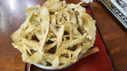 着いたときにはごぼう天はつゆについておらず浮かして?いた状態だったで私はそのまま一口食べてサクサク感と香りを味わいました。がすぐにつゆにダイブさせました。。。。