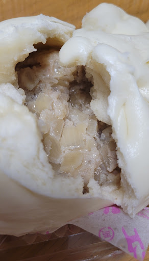 Read more冷え込んできました。 肌を刺すような風に、肩をすぼめると共に、温かい物が欲しくなりお邪魔しました。 購入したのは、豚まん(税込260円)&シューマイ(10個)(税込400円/タレ付き)です。 豚まんとミニ豚まんのみ、温めができるとの事で、シューマイ(冷凍)は持ち帰りです。