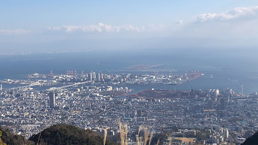 ココは標高約675mに有り 大阪湾の絶景を 楽しむ為に設けられた展望台です 早速 車を停め展望台に向かうと 冷気厳しく トテモ寒い中での展望デス