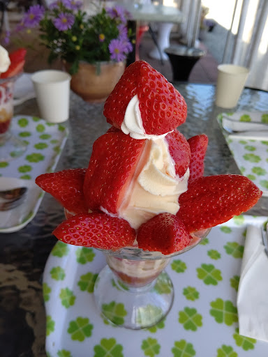 Read moreいちごパフェを食べたいと思っていたのですが、激甘だという声がちらほら聞かれたのでジェラートにしてみました。 一般的に想像するジェラートと違い、パフェのように器に盛られています。ジェラートの部分は良かったのですが、その下の部分(なかみと言うんでしょうか)に激甘のいちごのコンポートらしきものが入っていました。これがフレッシュいちごならどんなに美味しいことか…。 ちなみにこちらパフェにも入っているようで、これが激甘の正体みたいです。これを食べるならコーンフレークやグラノーラが入っていた方がいいというのが率直な感想です。いちごは美味しいので、ぜひフレッシュいちごを入れていただきたいです。 ちなみに外の席なの...