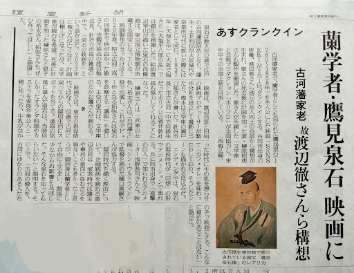 古河出身の故渡辺徹さん所属の文学座、たかお鷹さんが主演。 NHK大河「麒麟がくる」、「鎌倉殿の13人」でもお馴染みです。 徹さんの妻、榊原郁恵さん(武家の女性役)、長男の裕太さん(古河藩士役)、次男も医師役で初出演。「ホリプロ」も後援している。 また、同市出身の著名なお二人。 「進撃の巨人」の浅野恭司さんは、泉石の現役時代のアニメ描写!!。 映画「シン・ウルトラマン」監督の樋口正嗣さんも共に協力!!