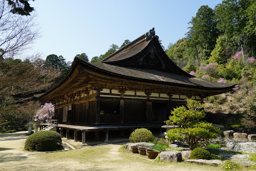 Read more湖南三山の一つです。 創建は古く、奈良時代のはじめに元明天皇の勅願によって開かれたそうです。 時代は下って、平安時代のはじめ、最澄がこの地で雨乞いをすると雨が降ったり、桓武天皇の病気が、ここで湧く水を飲んだことで平癒したりと「水」に関する伝説が多く伝わっています。 「善水寺」という寺名も、そのことが契機で、天皇から賜ったと言うことです。 本堂手前の「百伝の池」のそばに湧く水は、名水として有名で、ペットボトルなどに入れて持ち帰れます。 ペットボトルがないときには、本堂で専用の空のペットボトルを100円で販売しています😁 室町時代前期の本堂は、国宝に指定されています。 自分は、過去3回春に訪れましたが、いづれも桜🌸が美しく咲いていました。 「百伝の池」周辺の桜は、池を美しく飾っていて美しく、今年(2022年)は、風で花吹雪が舞っていました。 一方、本堂奥の枝垂れ桜は満開で、ピンクの桜は青空に美しく映えていました。 人里から少し離れているので、参拝客も少なくて、景色を独り占めできます。 本堂の御本尊は秘仏なので拝めませんが、その周りの諸仏や、倒壊してしまった山門に安置されていた金剛力士像を観ることができます。 以前は、ご住職(?)がお寺の縁起や諸仏について説明されていましたが、コロナのせいか録音されたアナウンスに変わっていました。 駐車場はかなり広く心配はありません。 拝観料は600円。 暖かな花...