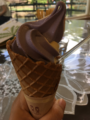 There is a small cafe selling kakigori, ice cream etc - you buy a ticket from a machine, however staff are more than willing to help you. There is a small plant shop, a wine shop, and a larger shop selling various herb and other related items. You can try various things there and I ended up buying some peach tea after having been given a sample. Cold peach tea was honestly perfect on such a hot day !