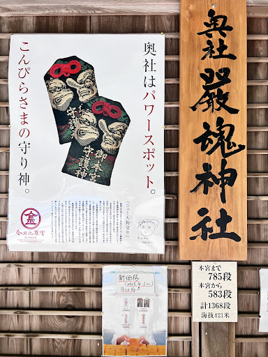 Read more需要一點腿力才能到達的神社 如果能力許可建議登頂 所在位置:金刀比羅宮本宮再往上 583 階石梯,合計 1368 階 才能抵達。 供奉神明:大物主大神之「荒魂(あらみたま)」,即祂威嚴、嚴厲的一面。 氛圍:深山中的小社殿, 被森林環繞,格外莊嚴寧靜。 🌄 參拜特色 爬階挑戰:從參道入口到本宮就要走 785 階,若再挑戰奧社則需合計 1368 階,往返大約要 2 小時以上。 能量聖地:據說抵達奧社參拜,可獲得「極大力量加持」, 常有人形容為能量滿滿的「聖域」。