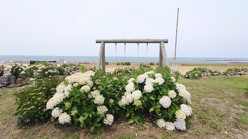 公園内の少し小高い丘へ登ると、日本海+紫陽花+木製ブランコのトリプルコラボが撮れてフォトジェニック&インスタ映え📷