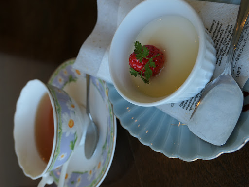 併設の喫茶店は静かで落ち着く。ふわふわのかき氷が印象的。 食事メニューも揃っており、次回試したい。