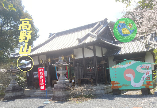 最寄り駅は和歌山線の高野口駅なんですけど、馬鹿にならない距離があって、とくに雨の日などはしんどいです。遠方からの方は、橋本駅からタクシーなどで向かうと良いでしょう。境内西脇にクルマを停められまして、坂を登っていくと、右手に社殿、左並びに授与所があります。正面から石段でも上がれますけど、お寺の境内を蹂躙する必要があります。晴れていれば、境内で位置を教えてもらうと、高野山のてっぺんを望むこともできます。神社なんですけど、弘法大師も奉っていて、とりわけ、お大師様を髙野の山に導いた、黒と白のお犬様を大切にしています。B5判くらいの少し大きめのご朱印書置きには、白黒2匹のお犬様をともなうお大師様が描かれますが、社務所で、「これはじつはオオカミさんですか?」と聞くと、頑なに、「いえ、ワンちゃんです」と申してきます。でも、もしかすると、ずっと昔は、山犬とか、狼さんだったんじゃないかと思いますけど」と突っ込んでも、「ほら、尾っぽがカールしてるでしょ、こうなると犬なんですよぉ」とおっしゃいますので、この山奥の向こうにある丹生都比売神社の祀る通り、犬なんだと思うわけですが、これが、関東に来ると、この弘法大師を導いた白と黒のお犬様は、エピソードとともに「白と黒の"狼さま"」として神変して、描かれているのです。埼玉県長瀞町にある狼信仰の大社、宝登山神社境内の、玉泉寺(真言宗智山派)にある「高野山開創」の彫刻欄間には、弘法大師空海を護衛する白黒2頭の狼様がご彩色で見事に彫り上げられています。この彫刻のおゐぬさまは、狼の特徴をよく捉えており、ピンと立った三角形のお耳、大きく裂けた口と牙、大きなふさふさと伸びた尻尾、など、ワンちゃんには見えません。開創年代からしても、地理的位置にしても、官省符神社のほうがずっと先なので、関東の狼信仰に取り込まれた伝来故事として観賞することはできるのですが、興味深いのは、新義であるものの、ほかならない真言宗のお寺に残る美術遺構ですから、やっぱり、オオカミだったんだけど、それだと可愛くないから、愛玩犬に近づけて祀ってるんじゃないかなぁ,と勝手に思ってます。授与所では、白黒両犬の描かれた、お守...