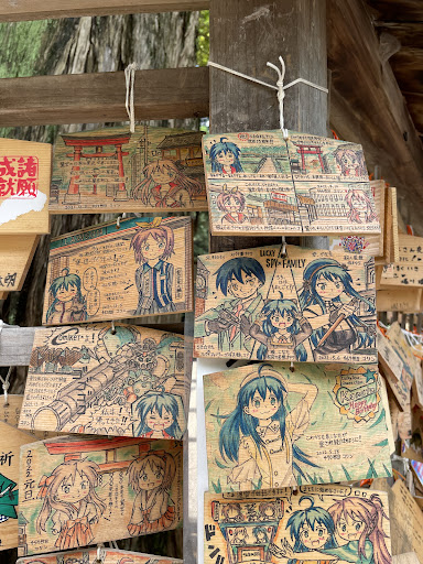 If you're a fan of Lucky Star, the anime, then this is the shrine that influenced the one in the show. At the time of writing, the iconic Torii gate had collapsed before I came here. Luckily, I had seen it on a previous visit. I hope that it is repaired or replaced but that didn't put me off coming back this year and I'd be happy to come back again in future. There are lots of anime related Emas to be seen so this is obviously a...