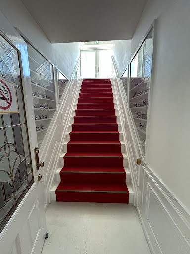 重厚な車を展示する1階とは異なり 2階に上がると 全体的に白とピンクの雰囲気となっている。異空間を思わせて...
