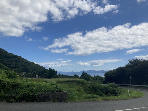 確かに、さざなみ街道の途中の休憩所から見る景色は美しいが、道は結構カーブが多く、クネクネしていて、行きも帰りも運転が大変そうです。(私は助手席ですが、、)