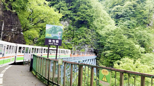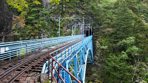 めちゃくちゃ迫力あります。行きも帰りも見どころです。黒部峡谷鉄道の名所のひとつ「後曳橋」は、黒薙駅近くの黒薙川に架かる青い鉄橋です。高さは約60メートル、長さは64メートルあり、深い谷をまたぐ姿は迫力があります。名前の由来は、あまりの谷の深さに思わず後ろに引き下がってしまうことから「後曳橋」と呼ばれるそうです。ガタンゴトンの音と...