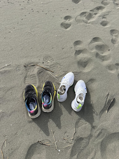 砂浜は細かい砂で、夜露も手伝ってスニーカーが湿ってしまうのから防水対策はしっかりと。 もしくは替えの靴を用意しておくといいですよ〜😆