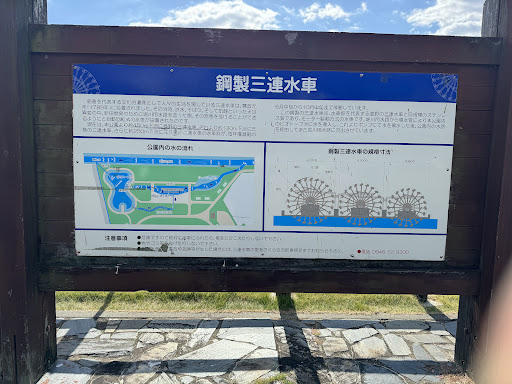 Read more三連水車を拝見すべくお邪魔。 広々とした公園と駐車場でしたが、日曜日のお昼時ともなると駐車場は8割埋まっているような状態でした。 隣の「三連水車の里あさくら」の方も大変にぎわっており、野菜やお肉、お弁当などなど、楽しくかつリーズナブルなラインナップが楽しかったです。 公園の方も子供向けの遊具、手入れされた芝生や花壇、放牧されたヤギを間近で見れるポイント、そして迫力のある水車があり、老若問わず楽しい時間を過ごせると思います。(うちは6歳、3歳の男の子...