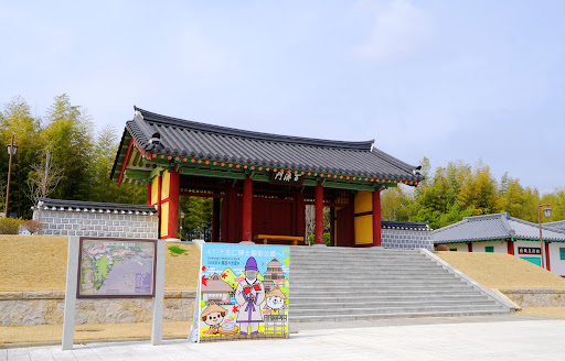 Read more新しく造られた公園。 百済門と千字文(色々な人が書いた字。一般〜政治家等の石祠) 広い無料駐車場。トイレ、資料館があります。 観光ツアーで行ったのですが新造された門と複数の一般人が書いた千字文があるだけで公園としては遊びや散策には物足りない。 公園より広い利用者のいない駐車場。 近くの吉野ヶ里遺跡と連動してこれから良くするのかな。今は特に魅力が無いです。 良い所 土日だと焼き芋をお手頃価格で販売してるのは嬉しい内容です。 ホームページより 神埼市神埼町竹原地区にある「鰐(わに)神社」には「王仁天満宮」という石祠が祀られています。この石祠は、5世紀初めごろ、応神天皇に招かれて、百済から多くの技術者をつれて渡来し、日本に初めて漢字の手本である「千字文(せんじもん)」と儒教の原典である「論語」を伝えた、王仁博士を祀ったもので、歴史浪漫が感じられる石祠です。神埼市では、この王仁天満宮の石祠を「古事記」や「日本書紀」にも登場する王仁博士の歴史遺産として捉え、韓国との文化的な交流活動などを行うとともに、隣接する吉野ヶ里歴史公園との連携により、古代よりつながる日本と韓国の歴史浪漫を感じられる新たな観光施設として王仁博士...