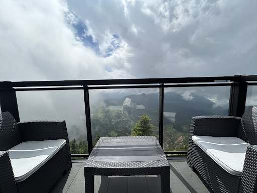山頂に行くまでのスカイレーター、リフトも素敵でしたが、テラスから見る景色は外国の絵画のようで、圧巻です🏔️ そして何より、併設されているカフェがとにかく最高でした! 室内の席も雰囲気があってよかったですが、それとは別に個室のテラス席がありまして、30分制限で貸切で利用できます☺️ (私が使わせていただいた個室テラス席は、1人がけのソファーが2つと、2人がけのソファーが1つありました🛋️個室テラス席自体は、私が見る限り2箇所ほど?しかなかったように思いましたので、人が多い日や時間帯によっては早く埋まってしまうかもしれません💦) 食事を味わいながら、景色のうつり変わりを楽しみながら、人目を気にせずゆっくりできました⭐️ ※ちなみに、山頂は晴れてるととても暑くて、曇ると肌寒かったので、夏でも羽織物を1枚持って行かれると安心かと思います!