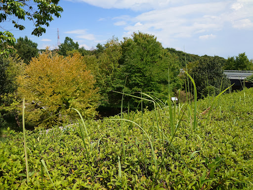 大山田エリアに拡がる丘陵地を、極力 其のまま 活かした様な、広大な公園。 子供連れの家族には嬉しい、様々な遊具が設置され、しかも 舟遊び?出来る池さえ・・。 私にとっては、懸垂可能な鉄棒(ステンレス棒?)が 、一ヶ所だけとは云へ 有るが・・。 此の場所特有の光景、子供達に 鉄棒や其の根元?のベンチが占領?されている事が多く、其の恩恵に浴した事は あまり無い(苦笑)。 其れでも ウォークに最適な、自然豊かな公園。
